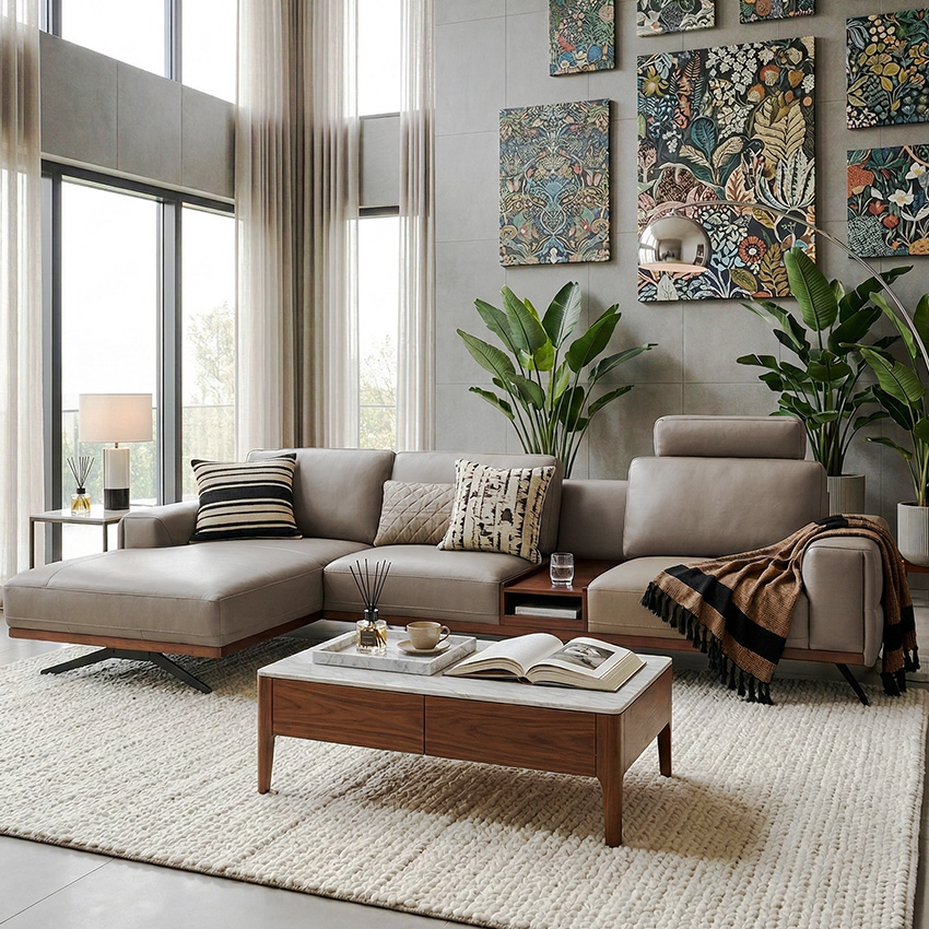 KF077Leather Chaise Sofa