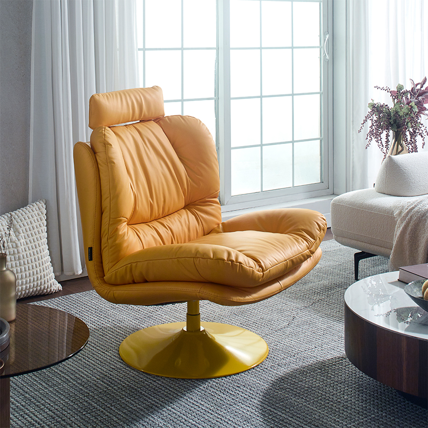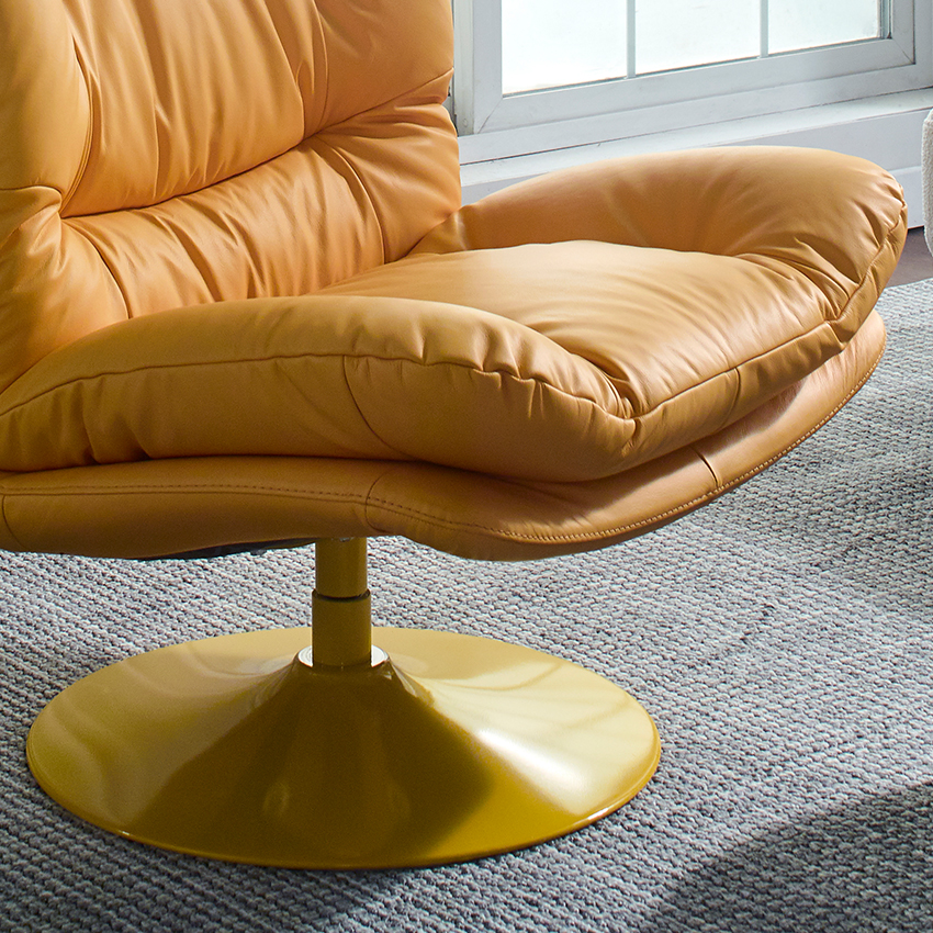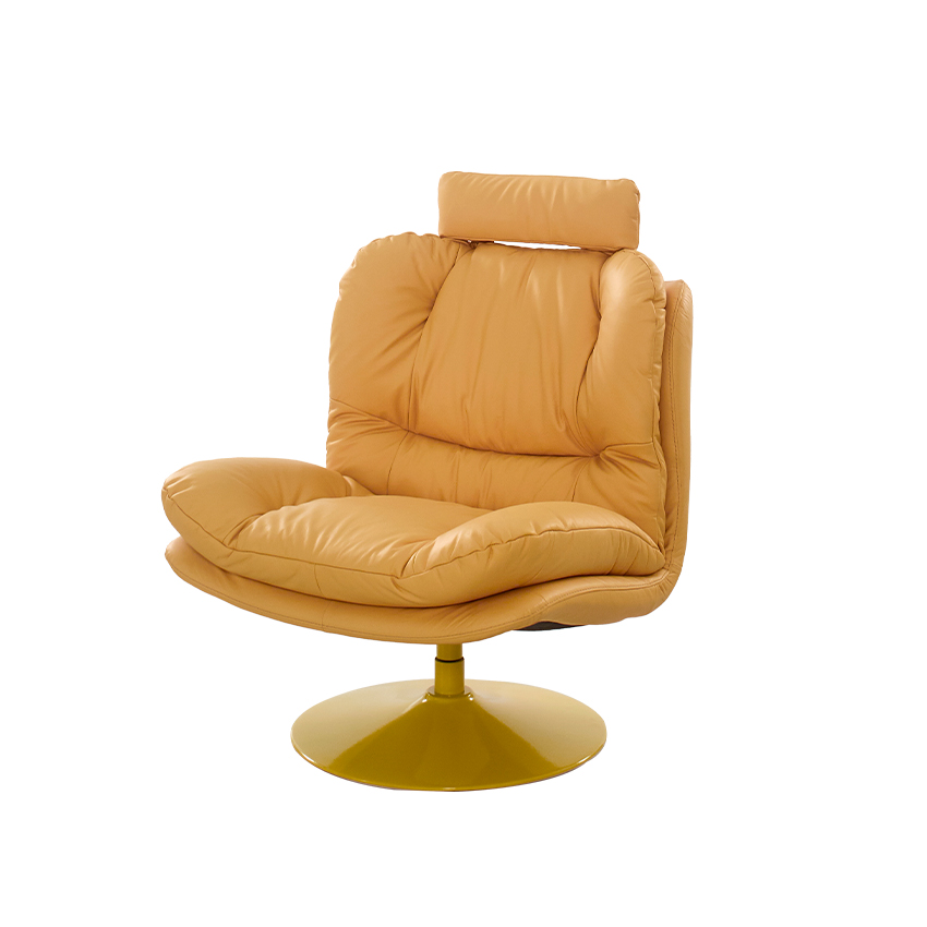 P017-Yellow Leather Swivel Chair