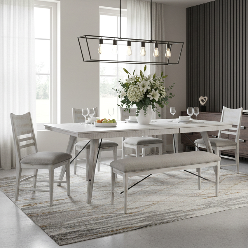 [ OUTLET ] MR-4290 Extension Dining Set (1 Table + 4 Side Chairs + 1 Bench)