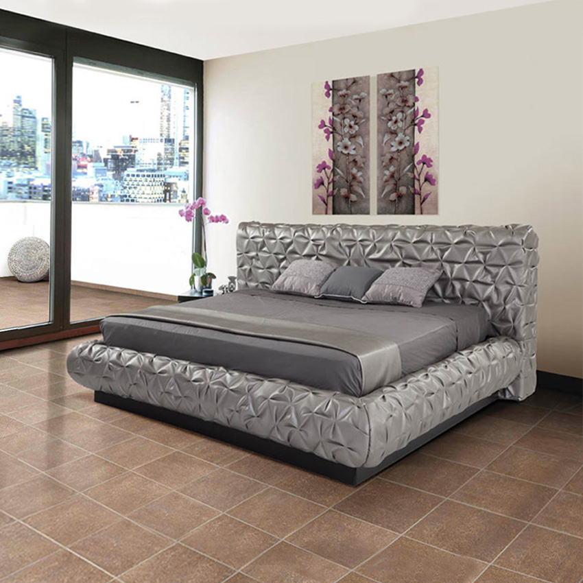 [ OUTLET ] Amalfi Silver Queen Upholstered Bed