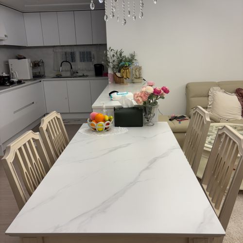 미라지세라믹 식탁4인용으로 바꿨어요 . 그리스 신전다리모양의 식탁다리가 두껍고 견고하고 의자쿠션감의 깊이감 두께감이 좋아서 식사뿐아니라 독서나 공부를 해도 될거 같아요 세라믹상판도 우리집 색감과 너무 잘 어울려서 좋아요. 예전부터 미라지 가구로 꾸미는게 소원이었는데 ~ 침대, 식탁, 소파테이블, 장식장, 화장대 등을 사서 꾸미게 되어 대만족입니다.. 미라지가구의 고급스러움 견고함이 감동 그 자체이네요 ~~